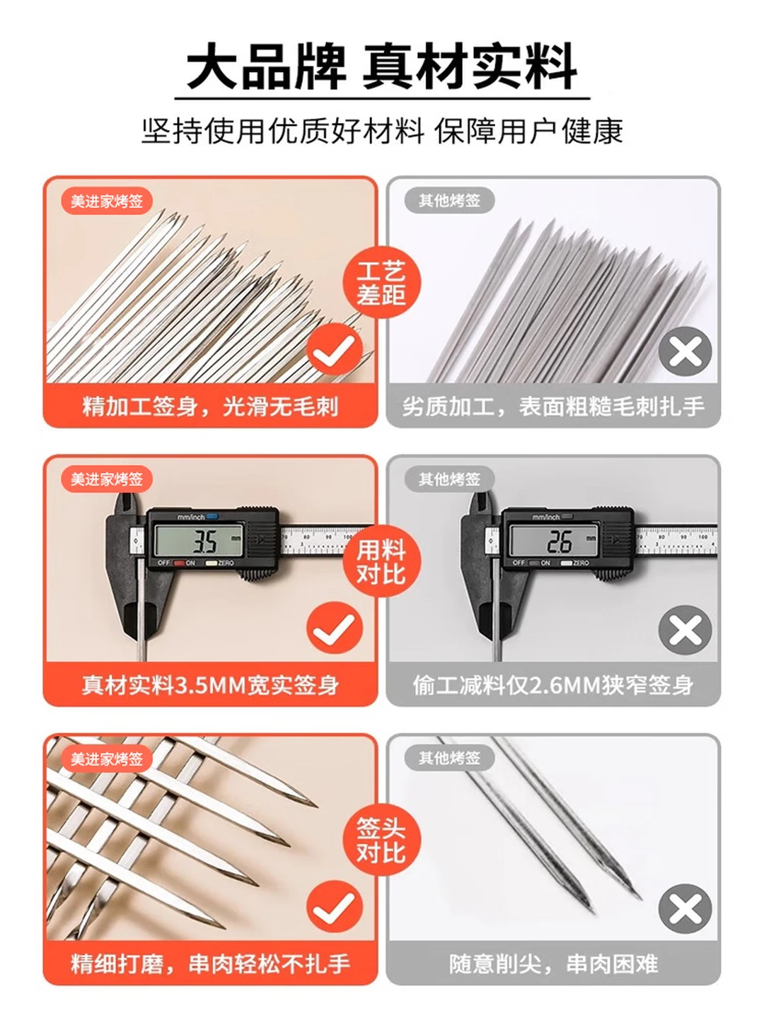 Stainless steel skewer meat skewer barbecue accessories